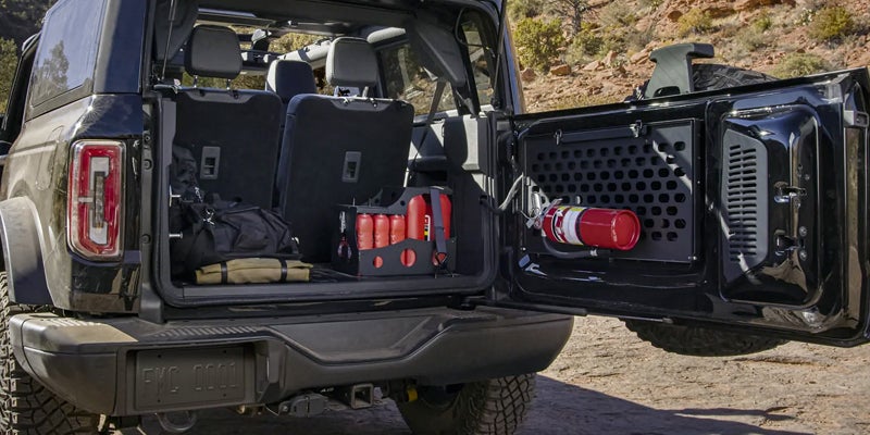 If you're looking for a vehicle with excellent cargo space, this is the choice for you. Even with the two-door body style, the Bronco has 22.4 cubic feet behind the rear seats and 52.3 cubic feet of space when you fold down those seats. Four-door hardtop models boast even more space with 35.6 cubic feet behind the rear seats and 77.6 cubic feet with the seats folded. For the most space, consider the four-door soft-top with 38.3 cubic feet behind the rear seats and 83.0 cubic feet once you fold down the seats.