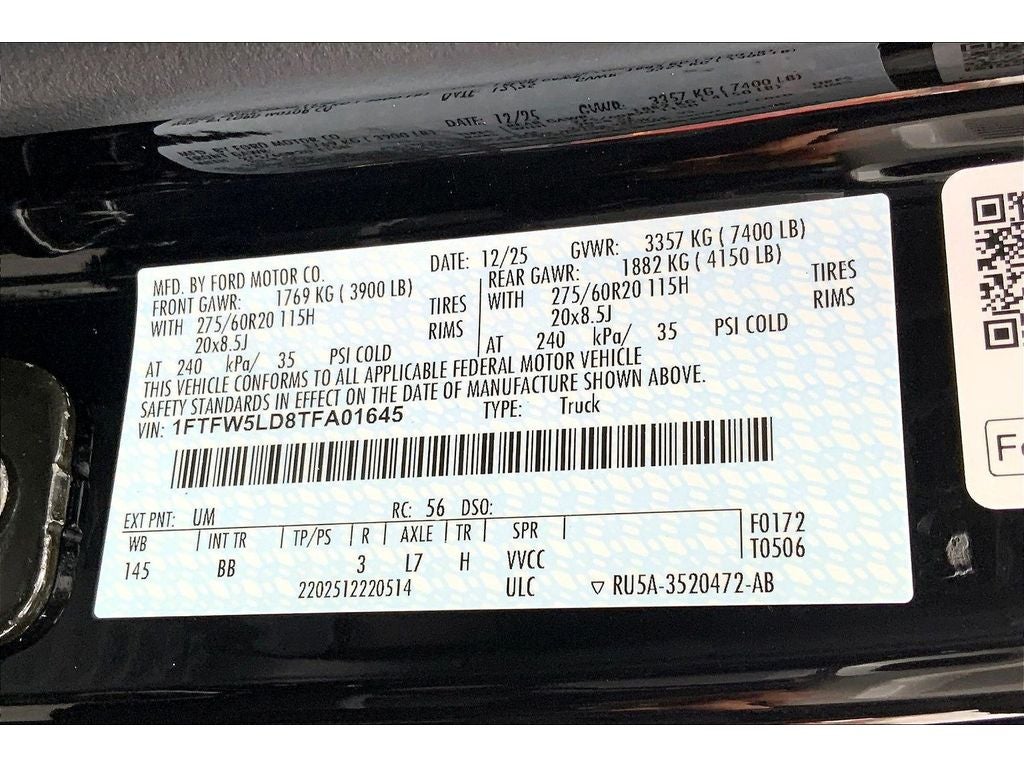 Lariat Black Appearance Package: Black Grille; ActiveX Trimmed Bucket Seats; Black Exterior Badging; Gray Box Side Decal; Body-Color Skull Caps and Door Handles; Body-Color Front and Rear Bumpers; Black Taillamp Bezels; Dark Interior Appliques. Equipment Group 501A Mid: Power-Adjustable Pedals with Memory; Power-Sliding Rear Window; B&O Sound System by Bang and Olufsen; Illuminated Driver and Passenger Visors; 6" Angular Bright Anodized Step Bar; 275/60R20 All-Terrain Tires. Mobile Office Package: Wireless Charging; Partitioned Lockable Rear Storage; Console Worksurface. Tow/haul Package: Integrated Trailer Brake Controller. Twin Panel Moonroof. Driver's Side SecuriCode Keyless-Entry Keypad. Max Tow Electronic Locking W/3.73 Axle Ratio. **Equipment listed is based on original vehicle build and subject to change. Please confirm the accuracy of the included equipment by calling the dealer prior to purchase.**