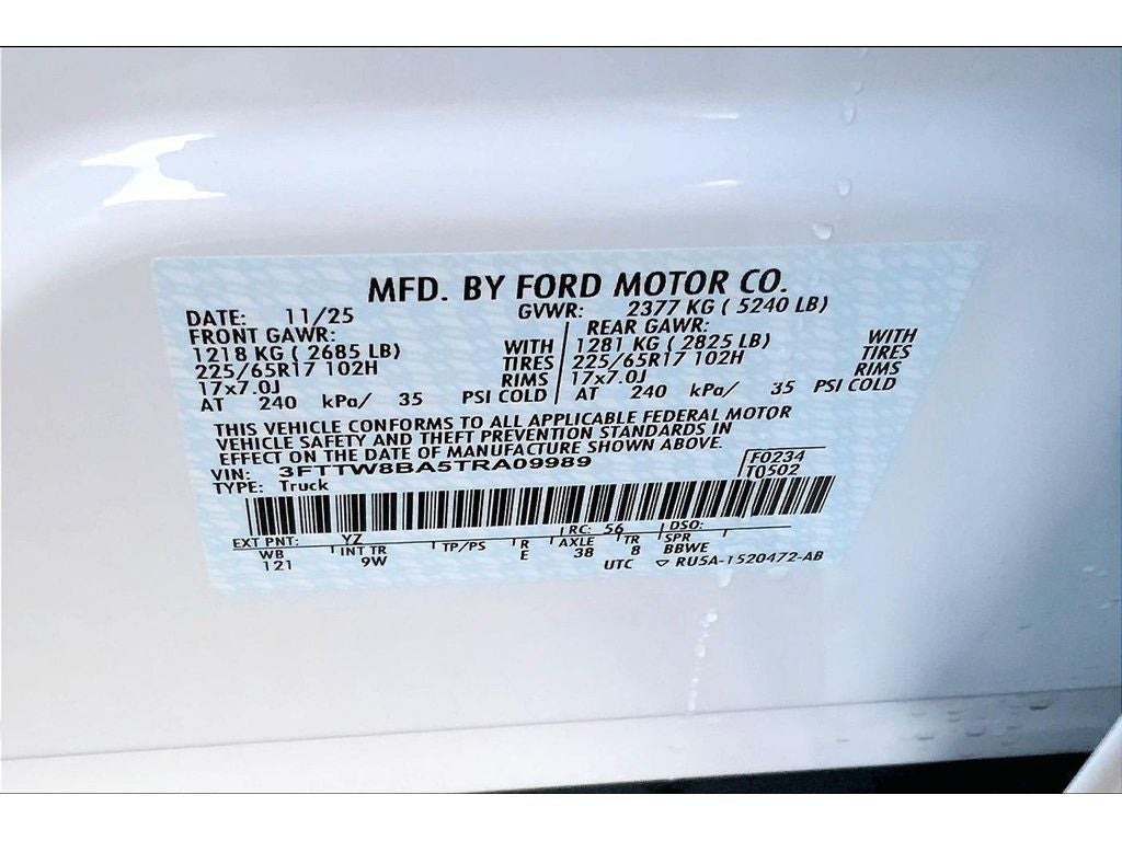 Ford Co-Pilot360: Exit Warning; Rear Cross Traffic Braking; Intersection Assist; Rear View Camera; Auto High Beams; BLIS with Cross-Traffic Alert and Trailer Coverage; Rear Parking Sensors; Power Glass Manual-Folding Mirrors; Pre-Collision Assist with Automatic Emergency Braking; Lane-Keeping System. Equipment Group 102A: 2.0L EcoBoost Engine; 8-Speed Automatic Transmission; P225/65R17 A/S BSW Tires; Front Cloth Bucket Seats; 5. 320 lbs GVWR; AM/FM Stereo with 6 Speakers. 4K Tow Package: Trailer Hitch (class III) 2" Receiver; Upgraded Cooling Fan; Higher Capacity Radiator; Conventional 17" Spare Tire (215/70R17); Trailer Brake Controller. Tough Bed Spray-In Bedliner. Conventional 17" Spare Tire (215/70R17). **Equipment listed is based on original vehicle build and subject to change. Please confirm the accuracy of the included equipment by calling the dealer prior to purchase.**