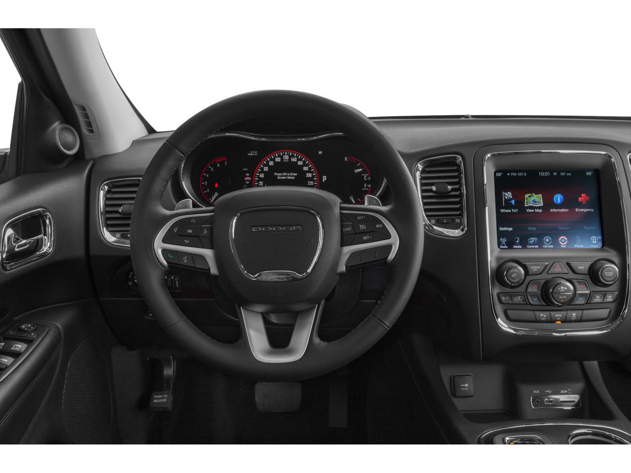 Bluetooth® technology is built into this Dodge Durango, keeping your hands on the steering wheel and your focus on the road. This Dodge Durango offers Automatic Climate Control for personalized comfort. The rear parking assist technology on the vehicle will put you at ease when reversing. The system alerts you as you get closer to an obstruction. See what's behind you with the back up camera on the Dodge Durango. Never get into a cold vehicle again with the remote start feature on this vehicle. The leather seats in this Dodge Durango are a must for buyers looking for comfort, durability, and style. Keep your hands warm all winter with a heated steering wheel in the vehicle . The vehicle has a V6, 3.6L high output engine. Maintaining a stable interior temperature in this unit is easy with the climate control system. This 2015 Dodge Durango is equipped with all wheel drive.
