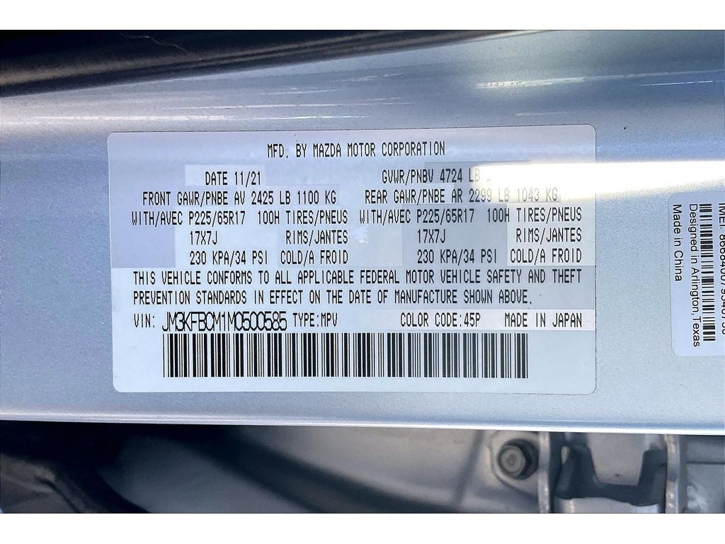 This 2021 Mazda CX-5 has only one previous owner, verified by AutoCheck. Start this 2021 Mazda CX-5 from inside with remote start. It has a clean AutoCheck report. Lane Keep Assist in it helps maintain safe driving by gently steering to stay within the lane. The leather seats in this vehicle are a must for buyers looking for comfort, durability, and style. This model offers Apple CarPlay for seamless connectivity. This 2021 Mazda CX-5 enhances safety with a blind spot monitor, alerting drivers to potential dangers in adjacent lanes. This model keeps you comfortable with Auto Climate. Protect this Mazda CX-5 from unwanted accidents with a cutting edge backup camera system. This vehicle comes equipped with Android Auto for seamless smartphone integration on the road. This 2021 Mazda CX-5 features a hands-free Bluetooth® phone system. With the keyless entry system on the vehicle you can pop the trunk without dropping your bags from the store.