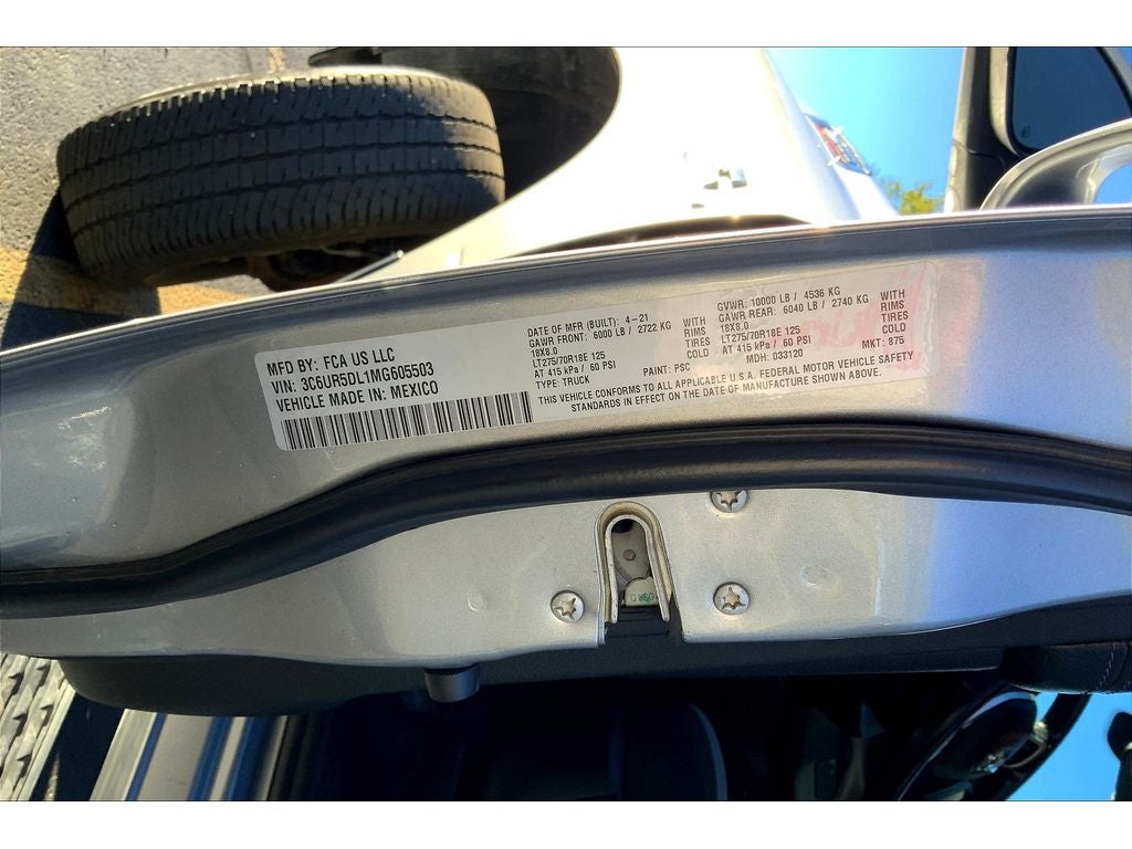 Quick Order Package 2HZ Big Horn. Chrome Flat Cab-Length Side Steps. LT275/70R18E OWL On/off Road Tires. Billet Silver Metallic CC. Tow Hooks. **Equipment listed is based on original vehicle build and subject to change. Please confirm the accuracy of the included equipment by calling the dealer prior to purchase.**