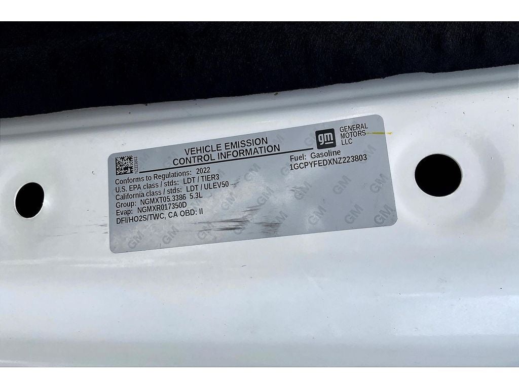 Safety Package: Perimeter Lighting; Ultrasonic Front and Rear Park Assist; Rear Cross Traffic Alert; Lane Change Alert with Side Blind Zone Alert. Preferred Equipment Group 2LT: LED Cargo Area Lighting; Rear Vision Camera; Bluetooth® For Phone; Remote Vehicle Starter System; 2 USB Ports (first Row); Electric Rear-Window Defogger; 5.3L EcoTec3 V8 Engine with NSS; Theft Deterrent System (unauthorized Entry); Auxiliary External Transmission Oil Cooler; LT275/65R18C MT BW Tires; Compass; 4.2" Diagonal Color Display Driver Info Center; Heated Steering Wheel; Trailering Package; Standard Tailgate; Front LED Fog Lamps; Heated Driver & Front Outboard Passenger Seats; Suspension Package; Steering Wheel Audio Controls; Color-Keyed Carpeting Floor Covering; OnStar and Chevrolet Connected Services Capable; Power Front Windows with Passenger Express Down; 2-Speed Transfer Case; Deep-Tinted Glass; All-Weather Floor Liner; High Gloss