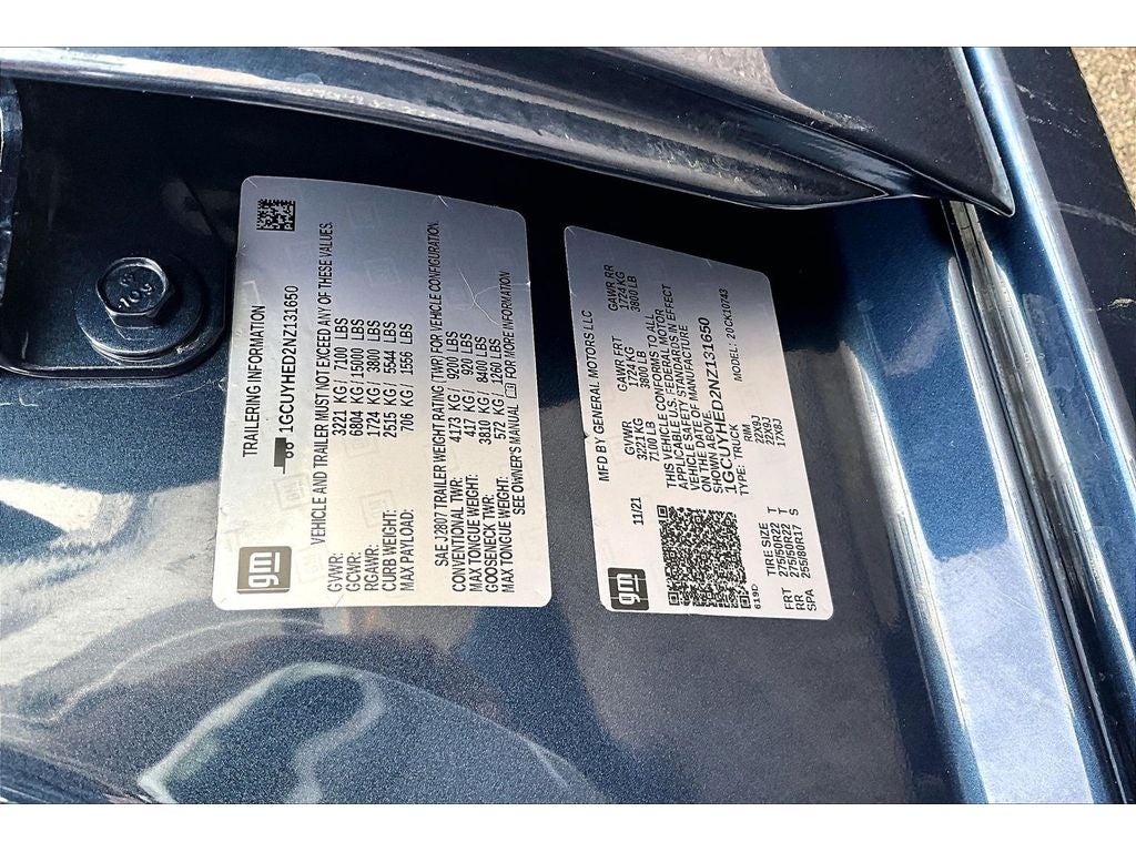 Safety Package II: Forward Collision Alert; Lane Keep Assist with Lane Departure Warning; Front Pedestrian Braking; Following Distance Indicator; Automatic Emergency Braking; Safety Alert Seat; IntelliBeam Automatic High Beam On/off; Adaptive Cruise Control. Technology Package: HD Surround Vision with 2 Trailer View Camera Provisions; 15" Diagonal Multicolor Head-Up Display; Bed View Camera; Rear Camera Mirror. High Country Deluxe: Power Sunroof; P275/50R22SL AS BW Tires; All-Weather Floor Liner; 22" X 9" Polished Aluminum Wheels. Preferred Equipment Group 3LZ: Chrome Assist Steps; Driver Memory; Perforated Leather Seat Trim; Power Sliding Rear Window with Rear Defogger; Ultrasonic Front and Rear Park Assist; Electric Rear-Window Defogger; Theft Deterrent System (unauthorized Entry); Compass; Heated Steering Wheel; 120-Volt Instrument Panel Power Outlet; Heated Driver and Front Outboard Passenger Seats; Wireless Charging; Front Bucket Seats; Color-Keyed Carpeting Floor Covering; OnStar and Chevrolet Connected Services Capable; 8" Driver Information Center; 2nd Row Heated Outboard Seats; Power Front Passenger Windows with Express Up/down; Front Carpeted Floor Mats; Rear Carpeted Floor Mats; Body-Color Painted Mirror Caps; Power Rear Windows with Express Down; Integrated Trailer Brake Controller; Chrome Grille; Ventilated Driver and Front Passenger Seats; Leather Wrapped Steering Wheel; Manual Tilt/telescoping Steering Column; Keyless Open and Start; Auto-Dimming Inside Rearview Mirror; HD Rear Vision Camera; LED Cargo Area Lighting; Bluetooth® For Phone; Remote Vehicle Starter System; Advanced Trailering System; 5.3L EcoTec3 V8 Engine with NSS; Floor Mounted Center Console; Auxiliary External Transmission Oil Cooler; Trailering Package; Up-Level Rear Seat with Storage Package; Standard Tailgate; Rear Cross Traffic Alert; Front LED Fog Lamps; Chrome Recovery Hooks; Steering Wheel Audio Controls; Universal Home Remote; 120-Volt Bed Mounted Power Outlet; 2-Speed Transfer Case; Wireless Phone Projection; Deep-Tinted Glass; 10-Way Power Driver Seat with Lumbar; Chevytec Spray-On Black Bedliner; Lane Change Alert with Side Blind Zone Alert; Dual Exhaust with Polished Outlets; Electronic Cruise Control; Hitch Guidance with Hitch View; Power Front Windows with Driver Express Up/down; Power Tailgate; Rear Dual USB Charging-Only Ports; 10-Way Power Passenger Seat Adjuster with Lumbar; Outside Heated Power-Adjustable Mirrors; Rear Wheelhouse Liners; 12-Volt Rear Auxiliary Power Outlet; Auto-Locking Rear Differential; Power Door Locks. 22" X 9" Polished Aluminum Wheels. Power Sunroof. Adaptive Ride Control Suspension. Bed View Camera. All-Weather Floor Liner. 2nd Row Heated Outboard Seats. Wheel Locks (set of 4). **Equipment listed is based on original vehicle build and subject to change. Please confirm the accuracy of the included equipment by calling the dealer prior to purchase.**