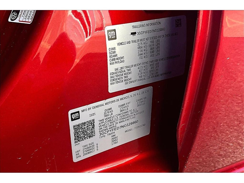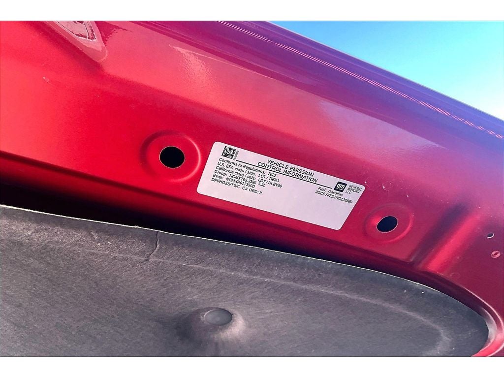 Convenience Package II: HD Rear Vision Camera; Premium Bose 7-Speaker Sound System; Power Sliding Rear Window with Rear Defogger; SiriusXM with 360L; Wireless Phone Projection; 120-Volt Instrument Panel Power Outlet; Chevrolet Infotainment 3 Plus System Radio; 2 USB Ports; Universal Home Remote. Leather Package: Leather-Appointed Front Seat Trim; Up-Level Rear Seat with Storage Package. LT Trail Boss Premium Package: Power Tailgate. Safety Package: Perimeter Lighting; Ultrasonic Front and Rear Park Assist; Rear Cross Traffic Alert; Lane Change Alert with Side Blind Zone Alert. Preferred Equipment Group 2LT: LED Cargo Area Lighting; Rear Vision Camera; Bluetooth® For Phone; Remote Vehicle Starter System; 2 USB Ports (first Row); Electric Rear-Window Defogger; 5.3L EcoTec3 V8 Engine with NSS; Theft Deterrent System (unauthorized Entry); Auxiliary External Transmission Oil Cooler; Compass; 4.2" Diagonal Color Display Driver Info Center; Heated Steering Wheel; Trailering Package; Standard Tailgate; Front LED Fog Lamps; Heated Driver and Front Outboard Passenger Seats; Suspension Package; Steering Wheel Audio Controls; Color-Keyed Carpeting Floor Covering; OnStar and Chevrolet Connected Services Capable; Power Front Windows with Passenger Express Down; 2-Speed Transfer Case; Deep-Tinted Glass; All-Weather Floor Liner; High Gloss Black Mirror Caps; Dual Exhaust with Polished Outlets; Electronic Cruise Control; Power Rear Windows with Express Down; Performance Red Recovery Hooks; Power Front Windows with Driver Express Up/down; High Gloss Black Grille; Leather Wrapped Steering Wheel; EZ Lift Power Lock and Release Tailgate; Convenience Package; Rear Dual USB Charging-Only Ports; Keyless Open and Start; LED Reflector Headlamps; 12-Volt Rear Auxiliary Power Outlet; Auto-Locking Rear Differential; Power Door Locks. Bed Protection Package: Rear Wheelhouse Liners; Chevytec Spray-On Black Bedliner. 20" X 9" High Gloss Black Painted Aluminum Wheels. Cherry Red Tintcoat. Integrated Trailer Brake Controller. 275/60R20SL AT BW Tires. Power Tailgate. **Equipment listed is based on original vehicle build and subject to change. Please confirm the accuracy of the included equipment by calling the dealer prior to purchase.**