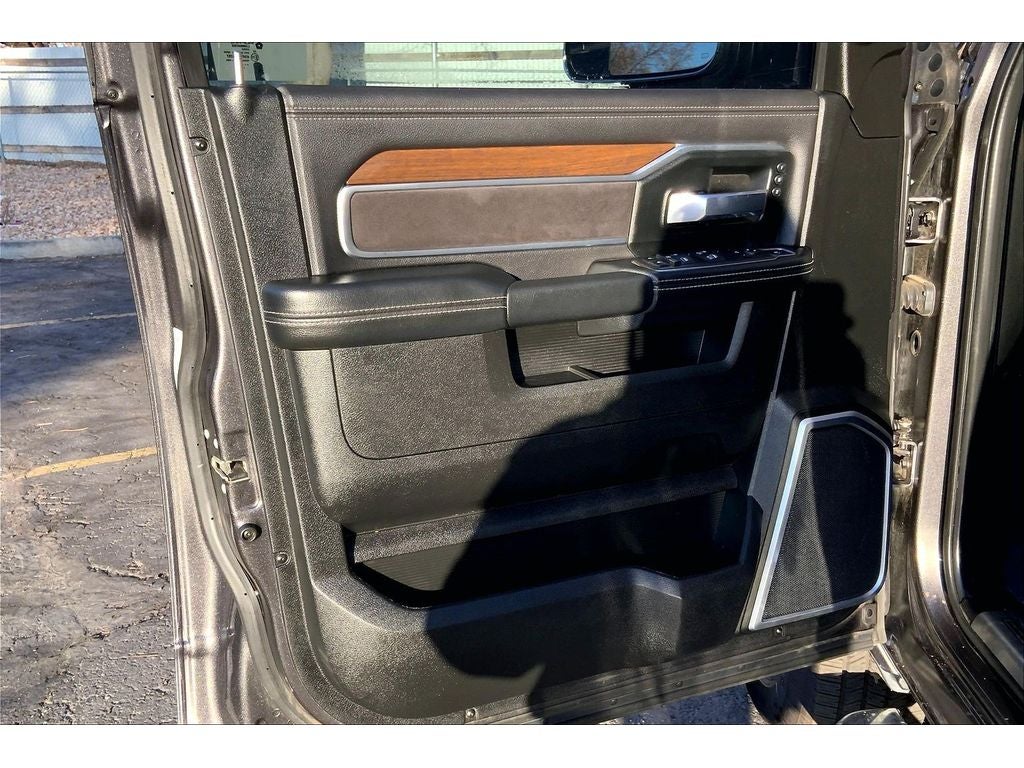 Cold Weather Group: Engine Block Heater; MOPAR Winter Front Grille Cover. Quick Order Package 2HH Laramie. Laramie Level B Equipment Group: Mirror-Mounted Aux Reverse Lamps; Rain Sensitive Windshield Wipers; Power Adjustable Pedals with Memory; Exterior Mirrors with Supplemental Signals; Power Convenience Chrome Tow Mirrors with Spotter and Memory; Exterior Mirrors Courtesy Lamps; Trailer Tow Mirrors; Remote Tailgate Release; 17 Speaker Harman Kardon Premium Sound; Exterior Mirrors with Heating Element; Auto High Beam Headlamp Control; Chrome Exterior Mirrors; Exterior Mirrors with Memory; Heated Second Row Seats; Mirror Running Lights; Power-Folding Mirrors; Foam Bottle Insert (door Trim Panel); Radio/driver Seat/mirrors/pedals Memory; Uconnect 5 Navigation Radio with 8.4" Display; Power Adjustable Convex Aux Mirrors. Uconnect 5 Navigation Radio with 8.4" Display. Chrome Flat Cab-Length Side Steps. MOPAR Spray in Bedliner. Blind Spot and Cross Path Detection. 5th Wheel/gooseneck Towing Prep Group. Anti-Spin Differential Rear Axle. Center Stop Lamp with Cargo View Camera. Granite Crystal Met CC. Granite Crystal Met CC. Tow Hooks. Clearance Lamps. **Equipment listed is based on original vehicle build and subject to change. Please confirm the accuracy of the included equipment by calling the dealer prior to purchase.**