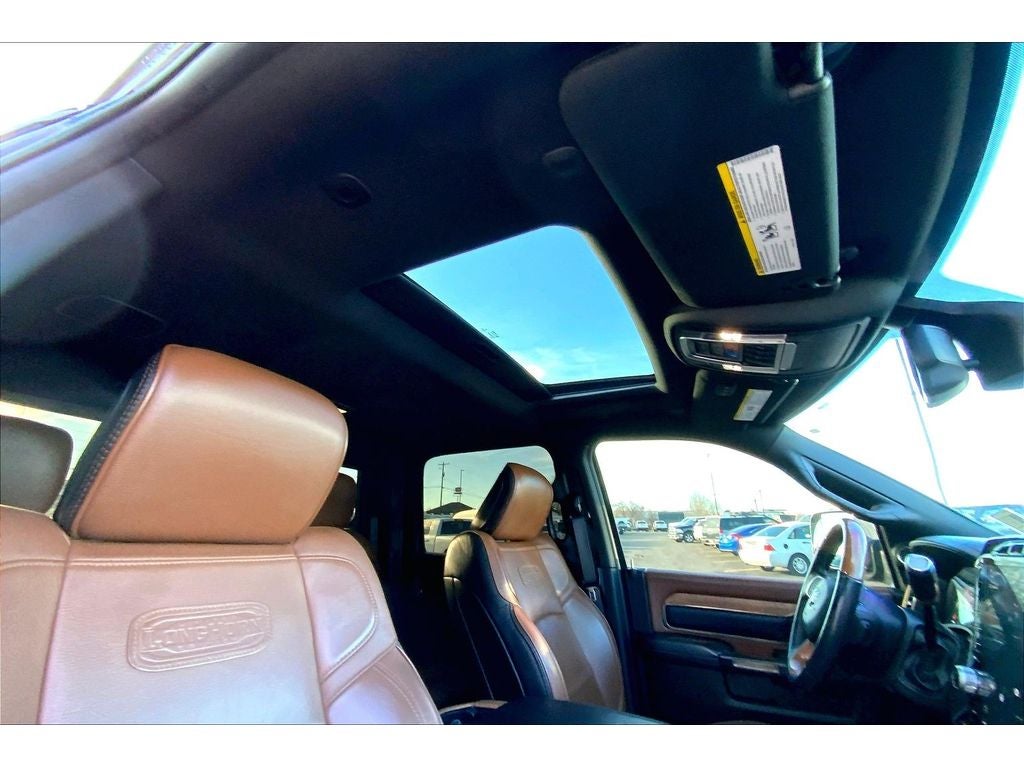 Quick Order Package 2HK Longhorn. Longhorn Level 1 Equipment Group: 17 Speaker Harman Kardon Premium Sound; Blind Spot and Cross Path Detection; Ramcharger Wireless Charging Pad; Uconnect 5 Navigation with 12.0" Display Radio; Power Deployable Running Boards. Towing Technology Group: Center Stop Lamp with Cargo View Camera; Surround View Camera System; Trailer Reverse Guidance. Protection Group: Transfer Case Skid Plate Shield. Heavy Duty Snow Plow Prep Group: Transfer Case Skid Plate Shield; 220 Amp Alternator. Body Color Bumper Group: Painted Front Bumper; Painted Rear Bumper. 20" X 8.0" Polished Aluminum Wheels. Uconnect 5 Navigation with 12.0" Display Radio. Power Sunroof. Trailer Surround View Camera System. Blind Spot and Cross Path Detection. Anti-Spin Differential Rear Axle. Center Stop Lamp with Cargo View Camera. Diamond Black Crystal PC. Diamond Black Crystal PC. **Equipment listed is based on original vehicle build and subject to change. Please confirm the accuracy of the included equipment by calling the dealer prior to purchase.**