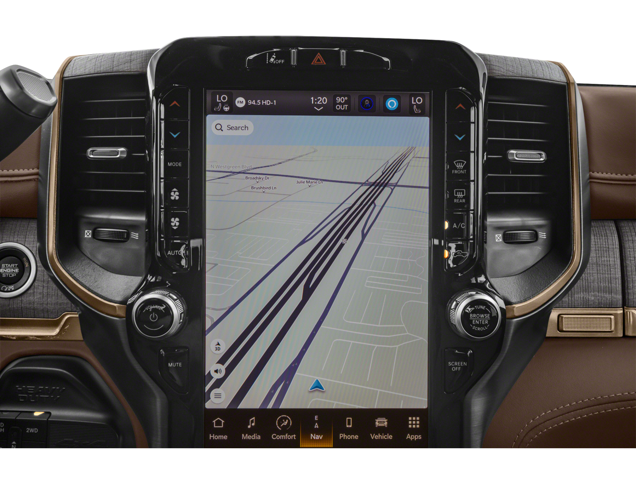 Cold Weather Group: Engine Block Heater; MOPAR Winter Front Grille Cover. Quick Order Package 2HM Limited. Limited Level 1 Equipment Group: Google Android Auto; SiriusXM Radio Service; Center Stop Lamp with Cargo View Camera; Surround View Camera System; Vendor Painted Cargo Box; For Details. Visit DriveUconnect.com; For More Info. Call 800-643-2112; Integrated Voice Command with Bluetooth®; LED Bed Lighting; Connectivity - US/Canada; Power Deployable Running Boards; 12" Touchscreen Display; GPS Navigation; 4G LTE Wi-Fi Hot Spot; RamBox Cargo Management System; Adaptive Steering System; GPS Antenna Input; SiriusXM with 360L; Global Telematics Box Module; Connected Travel and Traffic Services; Alexa Built-In; Trailer Reverse Guidance; Vendor Painted Cargo Box Tracking; Apple CarPlay; Off-Road Information Pages; Selectable Tire Fill Alert; Trailer Tow Pages; Disassociated Touchscreen Display; HD Radio; Ramcharger Wireless Charging Pad; Uconnect 5 Navigation with 12.0" Display Radio; 4 Adjustable Cargo Tie-Down Hooks; Full Speed Forward Collision Warning Plus; MOPAR Spray in Bedliner; 17 Speaker Harman/kardon Premium Sound; Truck Bed Cargo Divider; Adaptive Cruise Control with Stop; Digital Rearview Mirror; Lane Keep Assist. Auto Level Rear Air Suspension. Power Sunroof. 5th Wheel/gooseneck Towing Prep Group. Anti-Spin Differential Rear Axle. Center Stop Lamp with Cargo View Camera. Adaptive Steering System. Diamond Black Crystal PC. Instrument Panel Mounted Auxiliary Switches. **Equipment listed is based on original vehicle build and subject to change. Please confirm the accuracy of the included equipment by calling the dealer prior to purchase.**