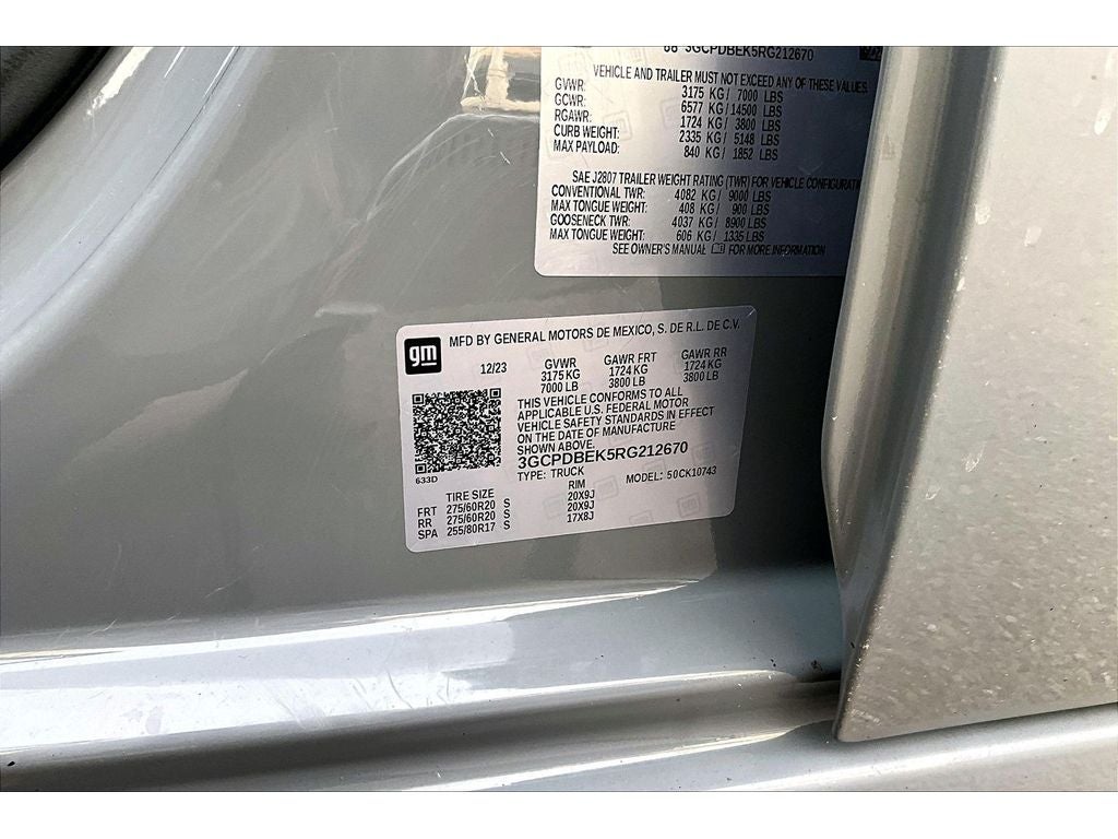 - Tires, 275/60R20 all-season, blackwall