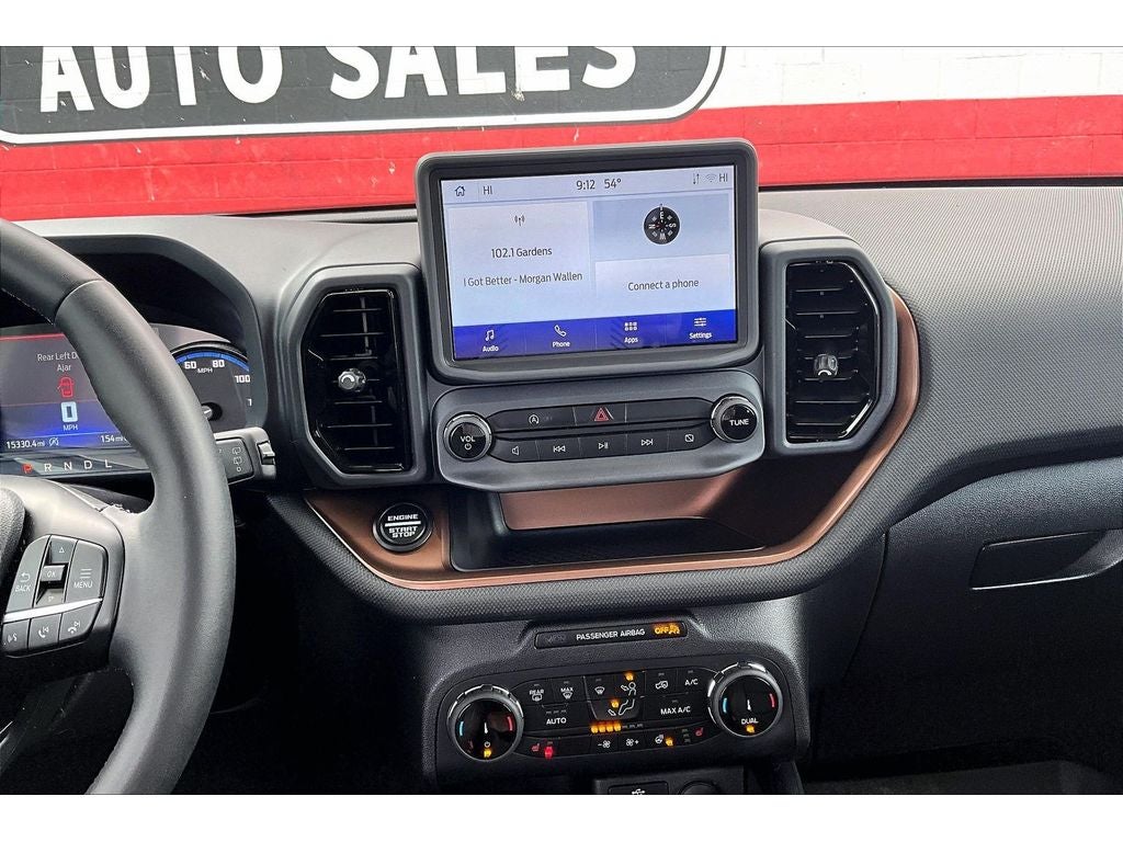 The rear parking assist technology on the Ford Bronco Sport will put you at ease when reversing. The system alerts you as you get closer to an obstruction. This mid-size suv features a hands-free Bluetooth® phone system. This vehicle is a certified CARFAX 1-owner. Keep your hands warm all winter with a heated steering wheel in this Ford Bronco Sport . Apple CarPlay: Seamless smartphone integration for this Ford Bronco Sport - stay connected and entertained on the go! This model warns of approaching vehicles with Cross-Traffic Alert. Start the Ford Bronco Sport from inside with remote start. The Ford Bronco Sport comes equipped with Android Auto for seamless smartphone integration on the road. The leather seats in it are a must for buyers looking for comfort, durability, and style. Protect this vehicle from unwanted accidents with a cutting edge backup camera system. This Ford Bronco Sport keeps you comfortable with Auto Climate.