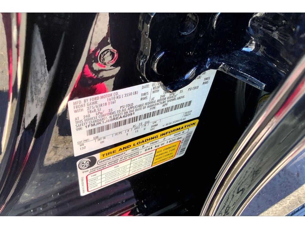 Equipment Group 202A High Package: 18" Machined-Face Aluminum Wheels; Wireless Charging Pad; Power Liftgate; 2nd Row Power-Folding Captain's Chairs; Accent Color Painted Rear Bumper; 7. 550 lbs GVWR; AM/FM Stereo with MP3 Capable; Heated Steering Wheel; Heated/ventilated Front Seats; 110V/150W AC Power Outlet; Power-Folding Sideview Mirrors with Autofold; 3rd Row Vinyl Power-Folding Head Restraints; 4-Door Intelligent Access (lock/unlock); 10-Speed Automatic Transmission with SelectShift; ActiveX-Trimmed 1st and 2nd Row Seats; Power-Adjustable Pedals with Memory; 3.5L EcoBoost V6 Engine; P275/65R18 AT Tires; SecuriCode Keyless Entry Keypad; Power Tilt/telescopic Steering Wheel with Memory; Ambient Lighting; Remote Start; 3.31 Axle Ratio; Advanced Security Pack. 2nd Row Power-Folding 40/20/40 ActiveX Bench Seat. ActiveX-Trimmed 1st and 2nd Row Seats. **Equipment listed is based on original vehicle build and subject to change. Please confirm the accuracy of the included equipment by calling the dealer prior to purchase.**
