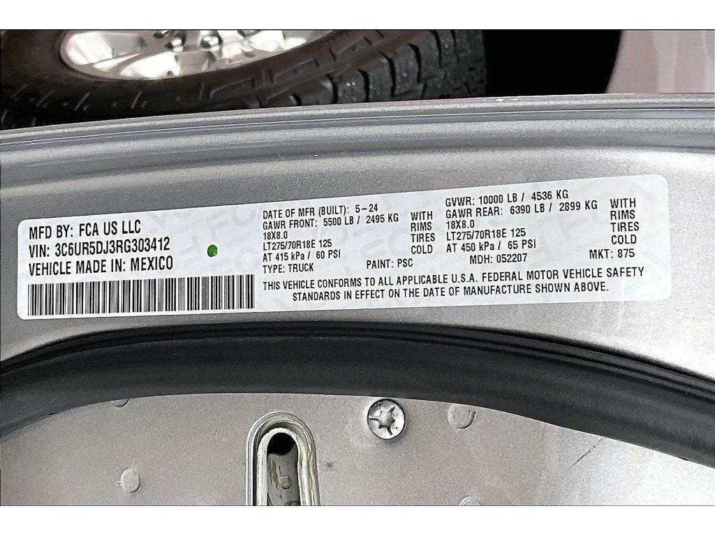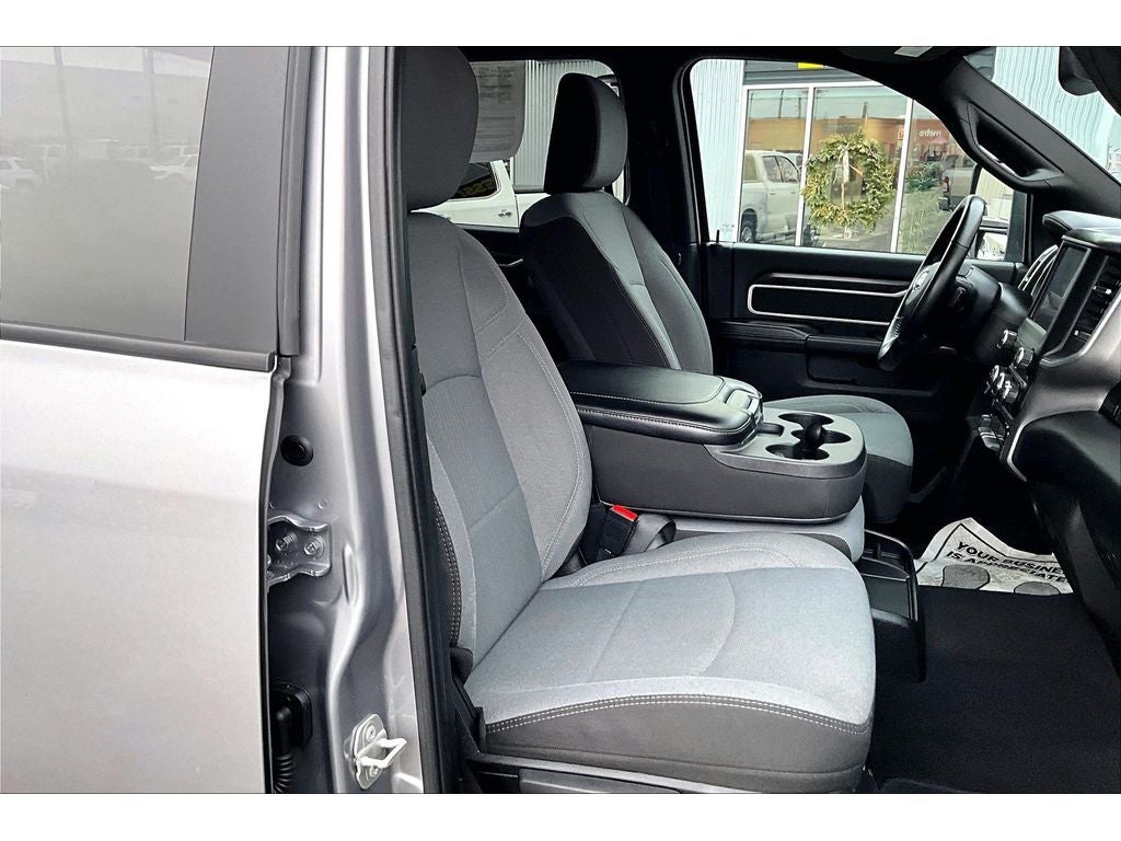 Quick Order Package 2GZ Big Horn. Level 1 Equipment Group: Google Android Auto; SiriusXM Radio Service; Bluetooth® Handsfree Phone and Audio; Integrated Center Stack Radio; For Details. Visit DriveUconnect.com; For More Info. Call 800-643-2112; Leather Wrapped Steering Wheel; Rear Dome with On/off Switch Lamp; Front Fog Lamps; Integrated Voice Command with Bluetooth®; Connectivity - US/Canada; Premium Cloth 40/20/40 Bench Seat; Glove Box Lamp; Auto Power-Folding Mirrors; Footwell Courtesy Lamp; 4G LTE Wi-Fi Hot Spot; GPS Antenna Input; Exterior Mirrors with Heating Element; Global Telematics Box Module; Mirror Running Lights; Uconnect 5 W Radio with 8.4" Display; 8.4" Touchscreen Display; Foam Bottle Insert (door Trim Panel); Black Exterior Mirrors; 18" X 8.0" Polished Aluminum Wheels; Apple CarPlay; Big Horn Instrument Panel Badge; Power Adjustable Convex Aux Mirrors; Forward and Reverse Utility Lights; Locking Lower Glove Box; Selectable Tire Fill Alert; SiriusXM Satellite Radio; Power Heated Fold Telescope Mirrors; Exterior Mirrors with Supplemental Signals; Steering Wheel Mounted Audio Controls; Exterior Mirrors Courtesy Lamps; Dual Glove Boxes; Center Hub; Power Adjust Mirrors; 2nd Row in Floor Storage Bins; Power Telescoping Mirrors. Premium Cloth 40/20/40 Bench Seat. Chrome Flat Cab-Length Side Steps. Billet Silver Metallic CC. Front Fog Lamps. Tow Hooks. **Equipment listed is based on original vehicle build and subject to change. Please confirm the accuracy of the included equipment by calling the dealer prior to purchase.**