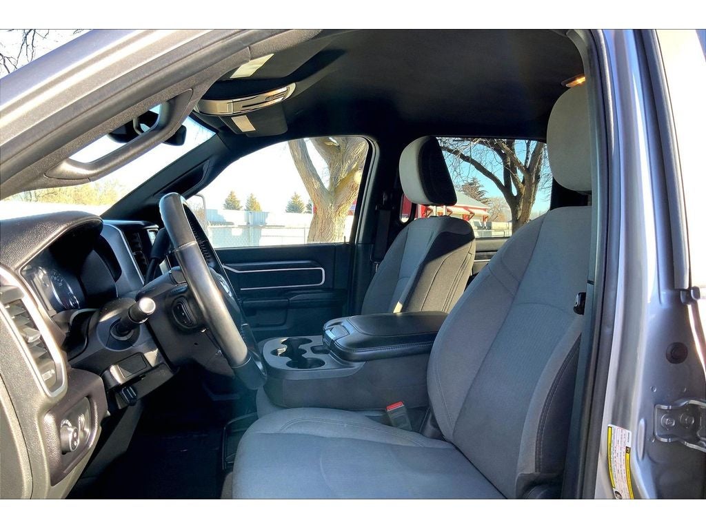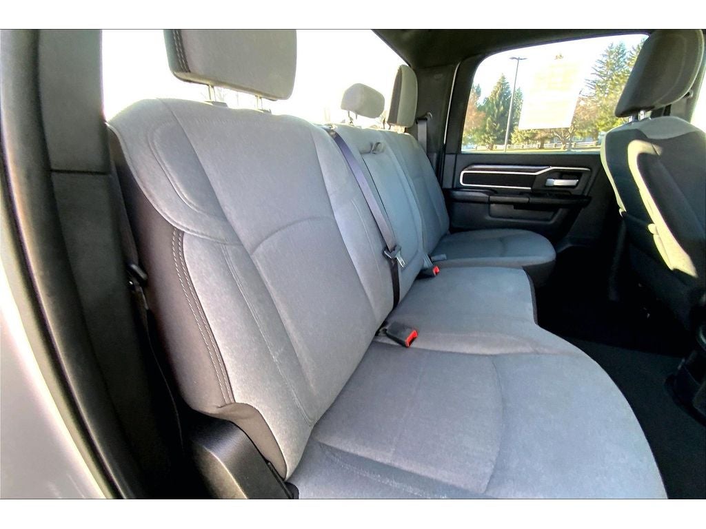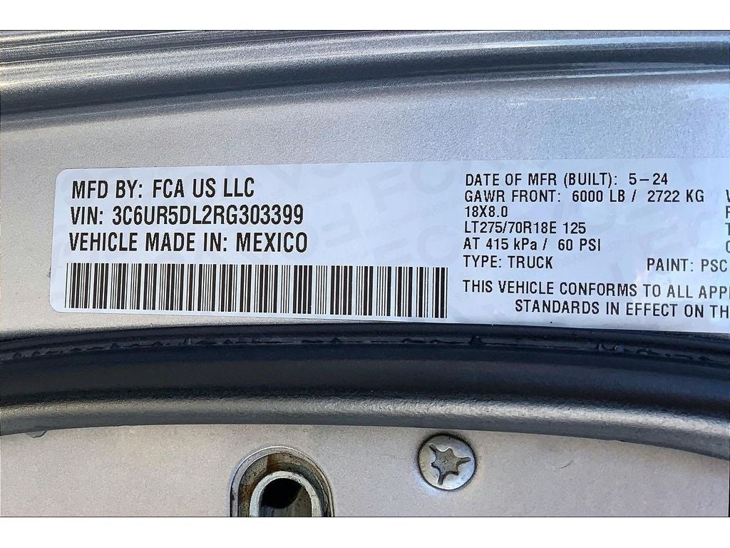 Quick Order Package 2HZ Big Horn. Level 1 Equipment Group: Google Android Auto; SiriusXM Radio Service; Bluetooth® Handsfree Phone and Audio; Integrated Center Stack Radio; For Details. Visit DriveUconnect.com; For More Info. Call 800-643-2112; Leather Wrapped Steering Wheel; Rear Dome with On/off Switch Lamp; Front Fog Lamps; Integrated Voice Command with Bluetooth®; Connectivity - US/Canada; Premium Cloth 40/20/40 Bench Seat; Glove Box Lamp; Auto Power-Folding Mirrors; Footwell Courtesy Lamp; 4G LTE Wi-Fi Hot Spot; GPS Antenna Input; Exterior Mirrors with Heating Element; Global Telematics Box Module; Mirror Running Lights; Uconnect 5 W Radio with 8.4" Display; 8.4" Touchscreen Display; Foam Bottle Insert (door Trim Panel); Black Exterior Mirrors; 18" X 8.0" Polished Aluminum Wheels; Apple CarPlay; Big Horn Instrument Panel Badge; Power Adjustable Convex Aux Mirrors; Forward and Reverse Utility Lights; Locking Lower Glove Box; Selectable Tire Fill Alert; SiriusXM Satellite Radio; Power Heated Fold Telescope Mirrors; Exterior Mirrors with Supplemental Signals; Steering Wheel Mounted Audio Controls; Exterior Mirrors Courtesy Lamps; Dual Glove Boxes; Center Hub; Power Adjust Mirrors; 2nd Row in Floor Storage Bins; Power Telescoping Mirrors. Quick Order Package 2GZ Big Horn. Premium Cloth 40/20/40 Bench Seat. Chrome Flat Cab-Length Side Steps. LT275/70R18E OWL On/off Road Tires. Billet Silver Metallic CC. Front Fog Lamps. Tow Hooks. **Equipment listed is based on original vehicle build and subject to change. Please confirm the accuracy of the included equipment by calling the dealer prior to purchase.**