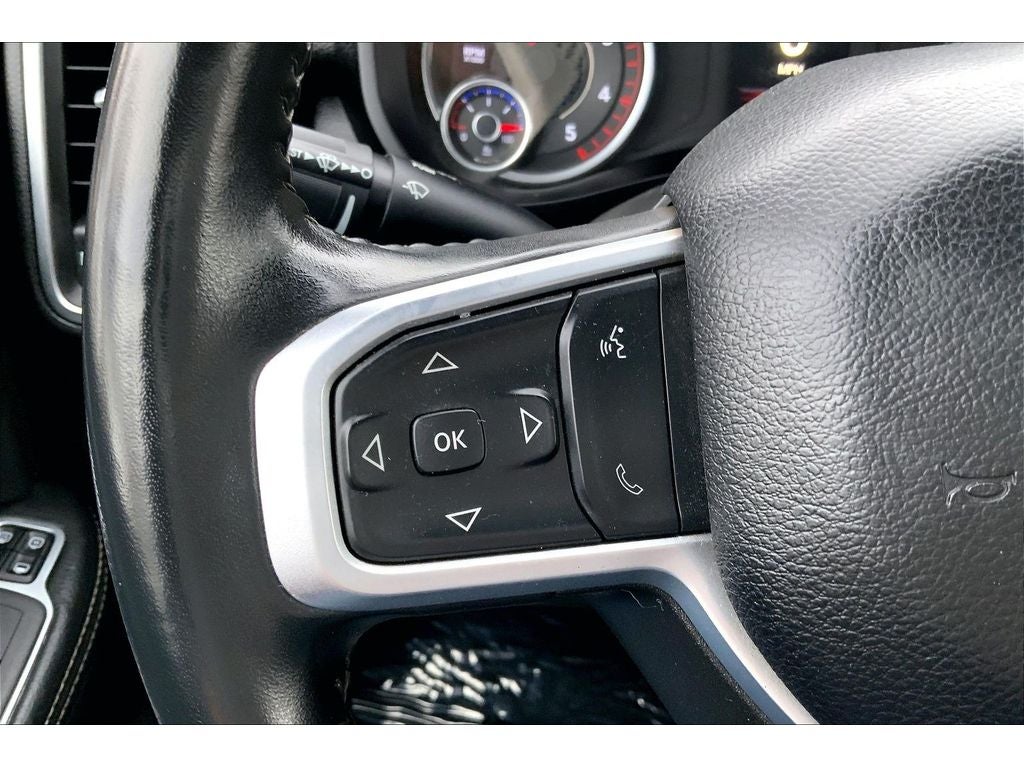 Quick Order Package 2HZ Big Horn. Level 1 Equipment Group: Google Android Auto; SiriusXM Radio Service; Bluetooth® Handsfree Phone and Audio; Integrated Center Stack Radio; For Details. Visit DriveUconnect.com; For More Info. Call 800-643-2112; Leather Wrapped Steering Wheel; Rear Dome with On/off Switch Lamp; Front Fog Lamps; Integrated Voice Command with Bluetooth®; Connectivity - US/Canada; Premium Cloth 40/20/40 Bench Seat; Glove Box Lamp; Auto Power-Folding Mirrors; Footwell Courtesy Lamp; 4G LTE Wi-Fi Hot Spot; GPS Antenna Input; Exterior Mirrors with Heating Element; Global Telematics Box Module; Mirror Running Lights; Uconnect 5 W Radio with 8.4" Display; 8.4" Touchscreen Display; Foam Bottle Insert (door Trim Panel); Black Exterior Mirrors; 18" X 8.0" Polished Aluminum Wheels; Apple CarPlay; Big Horn Instrument Panel Badge; Power Adjustable Convex Aux Mirrors; Forward and Reverse Utility Lights; Locking Lower Glove Box; Selectable Tire Fill Alert; SiriusXM Satellite Radio; Power Heated Fold Telescope Mirrors; Exterior Mirrors with Supplemental Signals; Steering Wheel Mounted Audio Controls; Exterior Mirrors Courtesy Lamps; Dual Glove Boxes; Center Hub; Power Adjust Mirrors; 2nd Row in Floor Storage Bins; Power Telescoping Mirrors. Quick Order Package 2GZ Big Horn. Premium Cloth 40/20/40 Bench Seat. Chrome Flat Cab-Length Side Steps. LT275/70R18E OWL On/off Road Tires. Diamond Black Crystal PC. Front Fog Lamps. Tow Hooks. **Equipment listed is based on original vehicle build and subject to change. Please confirm the accuracy of the included equipment by calling the dealer prior to purchase.**
