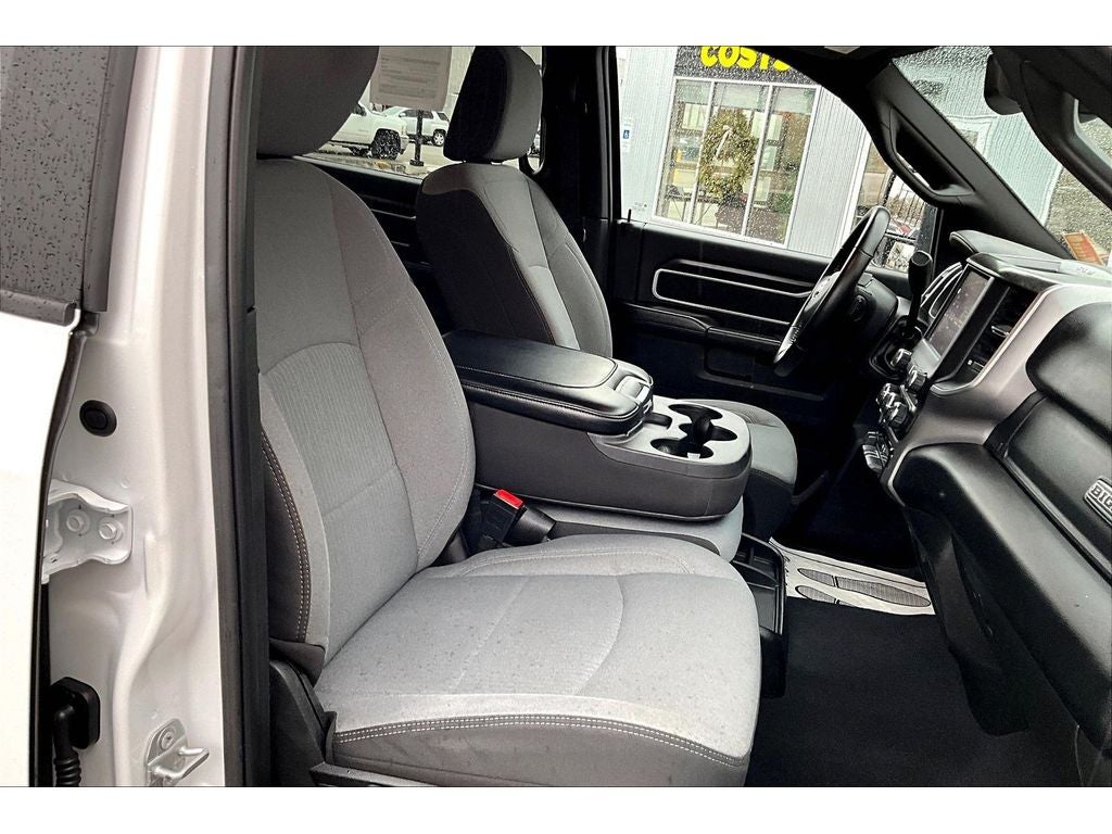 Quick Order Package 2HZ Big Horn. Level 1 Equipment Group: Google Android Auto; SiriusXM Radio Service; Bluetooth® Handsfree Phone and Audio; Integrated Center Stack Radio; For Details. Visit DriveUconnect.com; For More Info. Call 800-643-2112; Leather Wrapped Steering Wheel; Rear Dome with On/off Switch Lamp; Front Fog Lamps; Integrated Voice Command with Bluetooth®; Connectivity - US/Canada; Premium Cloth 40/20/40 Bench Seat; Glove Box Lamp; Auto Power-Folding Mirrors; Footwell Courtesy Lamp; 4G LTE Wi-Fi Hot Spot; GPS Antenna Input; Exterior Mirrors with Heating Element; Global Telematics Box Module; Mirror Running Lights; Uconnect 5 W Radio with 8.4" Display; 8.4" Touchscreen Display; Foam Bottle Insert (door Trim Panel); Black Exterior Mirrors; 18" X 8.0" Polished Aluminum Wheels; Apple CarPlay; Big Horn Instrument Panel Badge; Power Adjustable Convex Aux Mirrors; Forward and Reverse Utility Lights; Locking Lower Glove Box; Selectable Tire Fill Alert; SiriusXM Satellite Radio; Power Heated Fold Telescope Mirrors; Exterior Mirrors with Supplemental Signals; Steering Wheel Mounted Audio Controls; Exterior Mirrors Courtesy Lamps; Dual Glove Boxes; Center Hub; Power Adjust Mirrors; 2nd Row in Floor Storage Bins; Power Telescoping Mirrors. Premium Cloth 40/20/40 Bench Seat. Chrome Flat Cab-Length Side Steps. Front Fog Lamps. Tow Hooks. **Equipment listed is based on original vehicle build and subject to change. Please confirm the accuracy of the included equipment by calling the dealer prior to purchase.**
