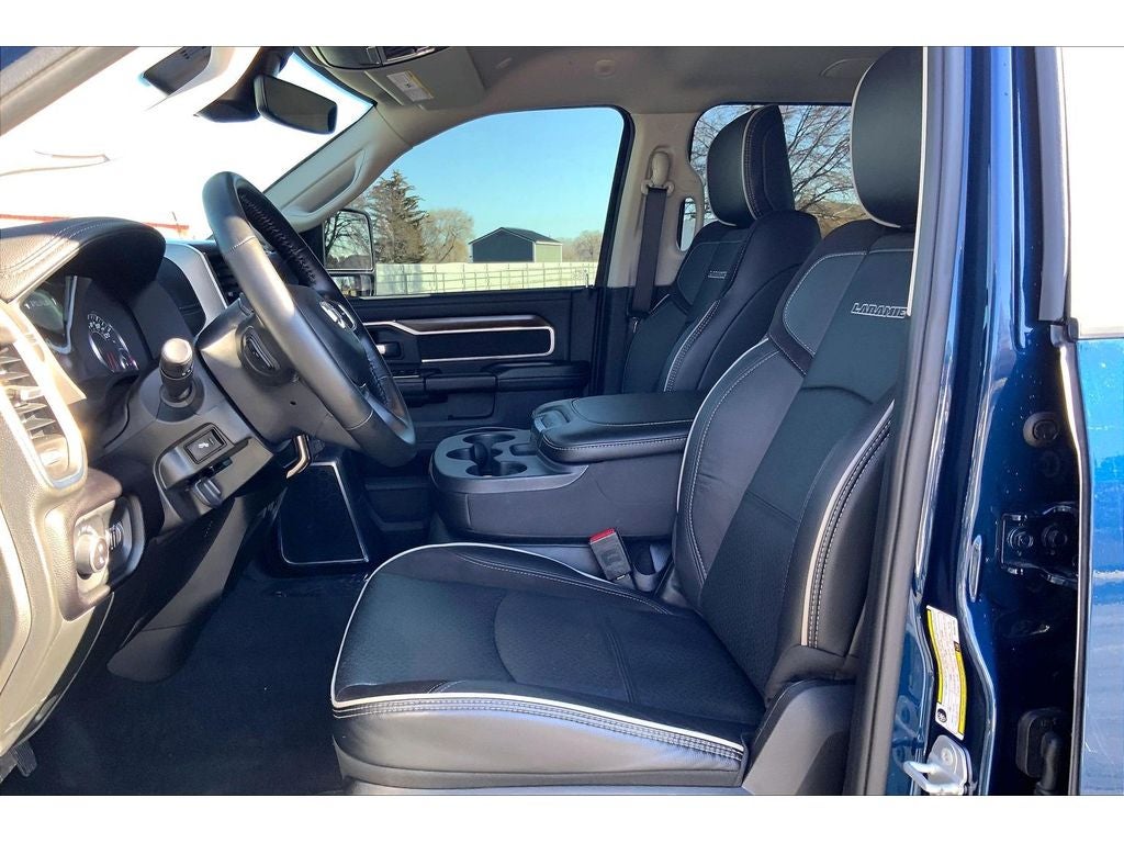 Quick Order Package 2HH Laramie. Laramie Level 1 Equipment Group: Google Android Auto; SiriusXM Radio Service; Blind Spot and Cross Path Detection; LED Tail Lamps; Power Adjustable Pedals with Memory; For Details. Visit DriveUconnect.com; For More Info. Call 800-643-2112; Integrated Voice Command with Bluetooth®; 12" Touchscreen Display; Auto Power-Folding Mirrors; Front LED Fog Lamps; Mirror Running Lights; Alexa Built-In; Apple CarPlay; Power Adjustable Convex Aux Mirrors; Forward and Reverse Utility Lights; Disassociated Touchscreen Display; Remote Tailgate Release; Center Hub; 2nd Row in Floor Storage Bins; Rear Window Defroster; Rain Sensitive Windshield Wipers; Rear Power Sliding Window; Connectivity - US/Canada; GPS Navigation; 4G LTE Wi-Fi Hot Spot; GPS Antenna Input; Exterior Mirrors with Heating Element; Auto Dim Exterior Mirror; SiriusXM with 360L; Global Telematics Box Module; Connected Travel and Traffic Services; LED Reflector Headlamps; Foam Bottle Insert (door Trim Panel); 18" X 8.0" Polished Aluminum Wheels; Off-Road Information Pages; Selectable Tire Fill Alert; Trailer Tow Pages; HD Radio; Uconnect 5 Navigation with 12.0" Display Radio; Power Heated Fold Telescopic Mirrors with Memory; Exterior Mirrors with Supplemental Signals; Exterior Mirrors Courtesy Lamps; Auto High Beam Headlamp Control; Chrome Exterior Mirrors; Exterior Mirrors with Memory; Power Adjust Mirrors; Power Telescoping Mirrors; Auto Dim Exterior Passenger Mirror; Auto Adjust in Reverse Exterior Mirrors; ParkSense Front/rear Park Assist System. Safety Group: Auto High Beam Headlamp Control; Blind Spot and Cross Path Detection; Rain Sensitive Windshield Wipers; Adaptive Cruise Control with Stop; Adaptive Steering System; Full Speed Forward Collision Warning Plus; Lane Keep Assist. Auto Level Rear Air Suspension. Chrome Flat Cab-Length Side Steps. MOPAR Spray in Bedliner. Blind Spot and Cross Path Detection. 5th Wheel/gooseneck Towing Prep Group. Anti-Spin Differential Rear Axle. Adaptive Steering System. Patriot Blue Pearlcoat. Instrument Panel Mounted Auxiliary Switches. Tow Hooks. **Equipment listed is based on original vehicle build and subject to change. Please confirm the accuracy of the included equipment by calling the dealer prior to purchase.**