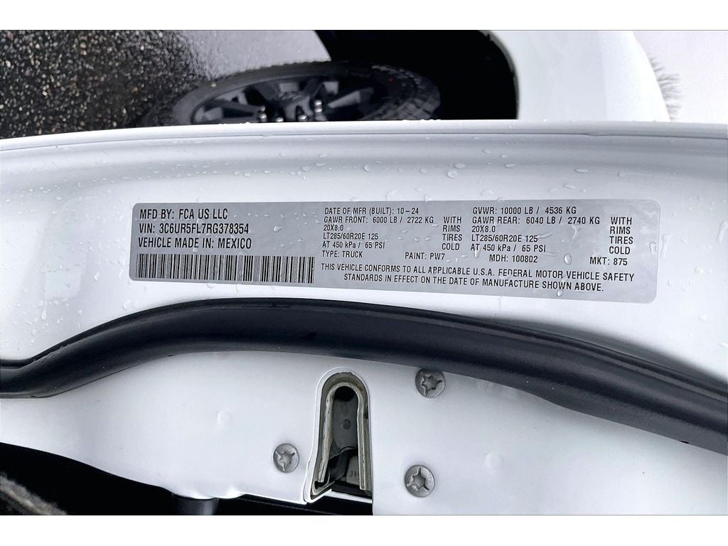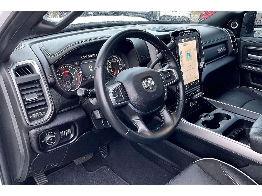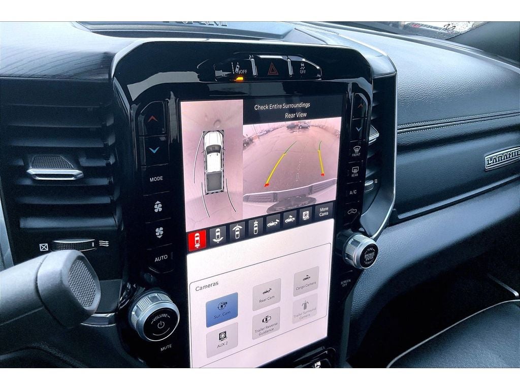 Cold Weather Group: Engine Block Heater; MOPAR Winter Front Grille Cover. Quick Order Package 2HH Laramie. Night Edition: LT285/60R20E OWL On/off Road Tires; Black Exterior Truck Badging; Black Ram Head Tailgate Badge; 20" X 8.0" Black Painted Aluminum Wheels; Gloss Black Grille Billets/accents; Body Color Grille Surround; Black Interior Accents; Black Headlamp Bezels; Sport Performance Hood; Black Tail Lamp Bezels; ParkSense Front/rear Park Assist System. Off Road Package. Safety Group: Auto High Beam Headlamp Control; Blind Spot and Cross Path Detection; Rain Sensitive Windshield Wipers; Adaptive Cruise Control with Stop; Adaptive Steering System; Full Speed Forward Collision Warning Plus; Lane Keep Assist. Towing Technology Group: Center Stop Lamp with Cargo View Camera; Surround View Camera System; Trailer Reverse Guidance. Laramie Level B Equipment Group: Google Android Auto; SiriusXM Radio Service; Blind Spot and Cross Path Detection; LED Tail Lamps; Power Adjustable Pedals with Memory; For Details. Visit DriveUconnect.com; For More Info. Call 800-643-2112; Integrated Vo