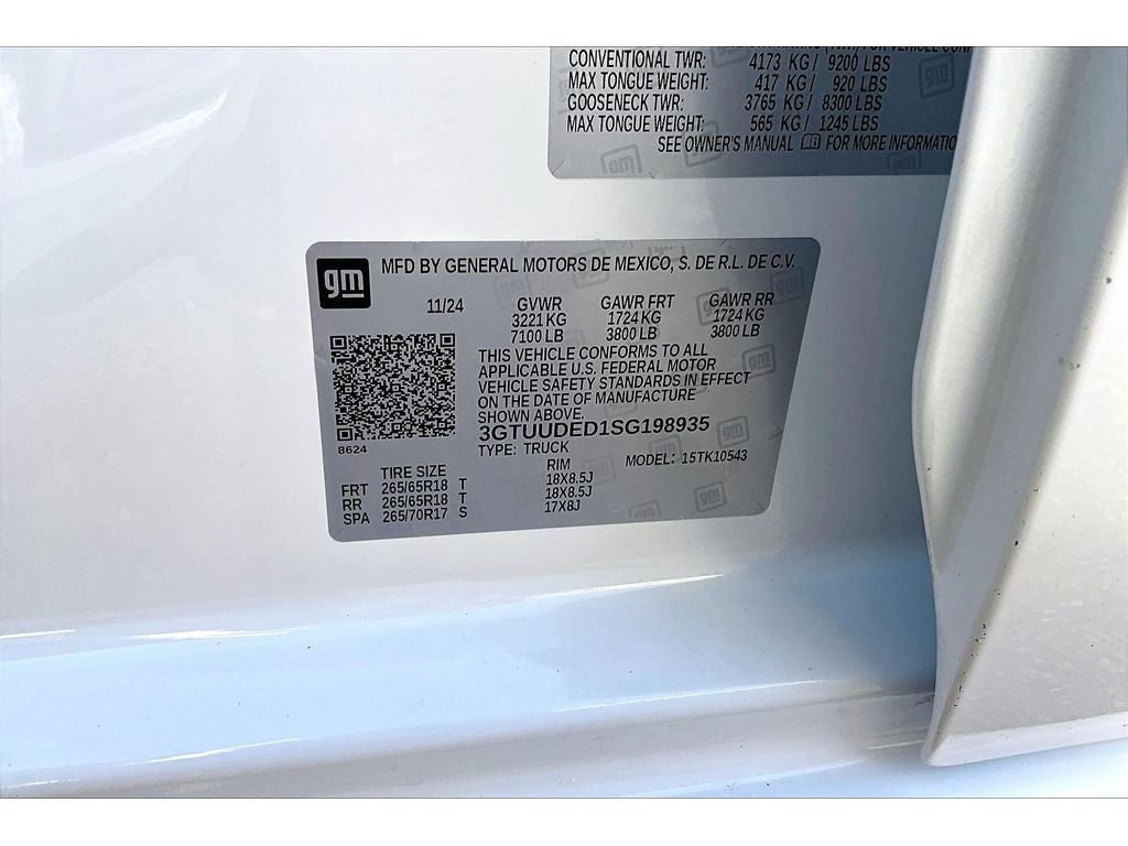 Preferred Equipment Group 4SA: HD Rear Vision Camera; LED Cargo Area Lighting; Remote Vehicle Starter System; Electric Rear-Window Defogger; 5.3L EcoTec3 V8 Engine; Theft Deterrent System (unauthorized Entry); Chrome Header and Chrome Grille Insert Bars; 170 Amp Alternator; Auxiliary External Transmission Oil Cooler; Front Rain-Sensing Wipers; GMC Pro Safety; Trailering Package; 120-Volt Interior Power Outlet; 10-Speed Automatic Transmission; Front 40/20/40 Split-Bench Seat; 18" X 8.5" 6-Spoke Machined Aluminum Wheels; 2 Charge/data USB Ports; Steering Wheel Audio Controls; 2 type-C Charge-Only Rear USB Ports; Color-Keyed Carpeting Floor Covering; OnStar Services Capable; Power Front Passenger Windows with Express Up/down; Deep-Tinted Glass; 6-Speaker Audio System Feature; Power Rear Windows with Express Down; Integrated Trailer Brake Controller; SiriusXM with 360L Trial Subscription; Single Speed Transfer Case; Power Front Windows with Driver Express Up/down; Manual Tilt-Wheel and Telescoping Steering Column; Front Frame-Mounted Black Recovery Hooks; Keyless Open and Start; Wi-Fi Hotspot Capable; Perimeter Lighting; Push Button Start; Rear Wheelhouse Liners; Auto-Locking Rear Differential; Power Door Locks. **Equipment listed is based on original vehicle build and subject to change. Please confirm the accuracy of the included equipment by calling the dealer prior to purchase.**